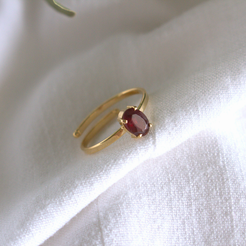 O acabamento dourado valoriza a pedra e traz sofisticação na medida certa. O aro regulável garante conforto e adaptação ao dedo, tornando o anel prático e fácil de usar.