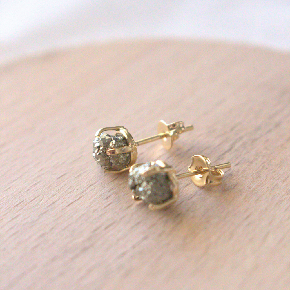 Conteúdo: 1 par de brincos com pedra natural Pirita bruta