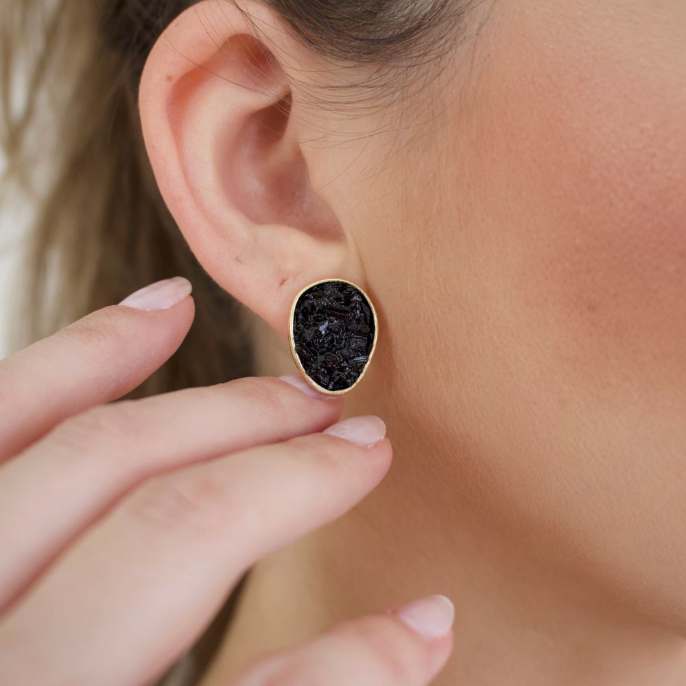 Os brincos da Coleção Vivaz com pedra natural Turmalina Preta da Jaya Pedras Naturais são joias que combinam proteção e elegância. Banhados a Ouro, esses brincos oferecem um brilho sofisticado e duradouro. Cada par de brincos traz consigo a poderosa energia da Turmalina Preta, conhecida por suas propriedades de proteção contra energias densas e negativas. São perfeitos para quem deseja um escudo energético e um toque de glamour em seu dia a dia.