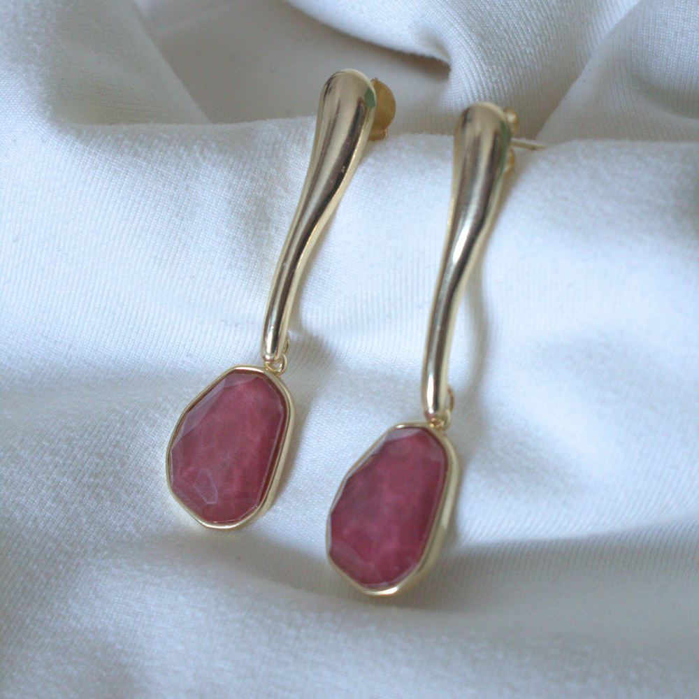 O Brinco Rodonita Essência nasce do encontro entre forma orgânica, leveza e presença. A pedra surge em seu rosa característico, com um formato orgânico que traz naturalidade e autenticidade à peça. Ela é sustentada por uma haste dourada alongada, criando um desenho leve, moderno e elegante, daqueles que alongam o rosto e iluminam o visual sem esforço.