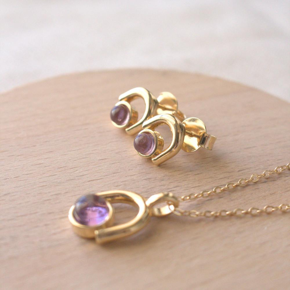 Um conjunto sofisticado que une design moderno e energia natural. O colar e os brincos em banho de Ouro 18k realçam a beleza única da Ametista em lapidação cabochão, trazendo um brilho suave e elegante. Delicado e versátil, é perfeito para acompanhar você em todos os momentos, do look de trabalho ao encontro especial.