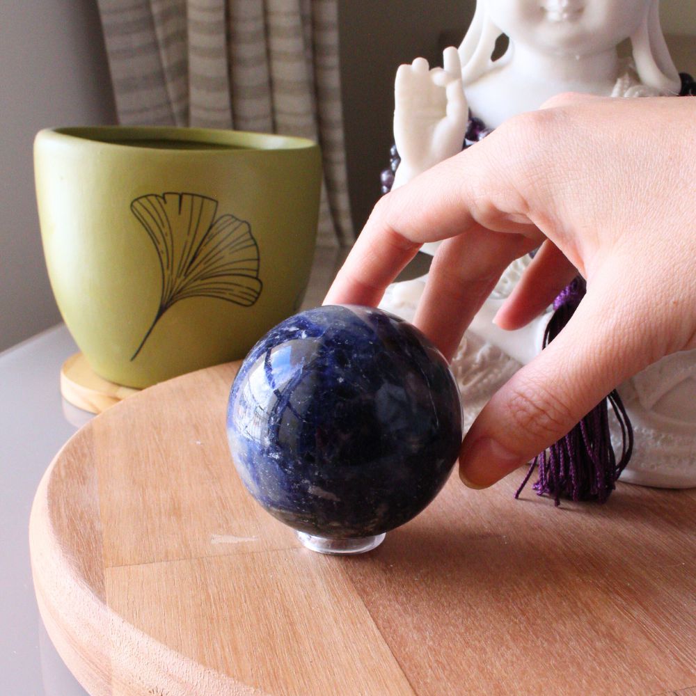 - Conteúdo: 1 esfera de pedra natural Sodalita