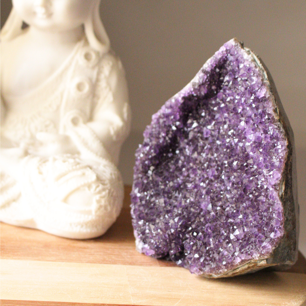 A Ametista é uma pedra extremamente poderosa e protetora, com uma vibração altamente espiritual. A sua serenidade favorece a meditação e estados de consciência mais elevados, ajudando a conexão com a nossa verdade interna. Inspira a cura e trabalha no desenvolvimento das habilidades intuitivas. É a pedra da transmutação de pensamentos e energia.