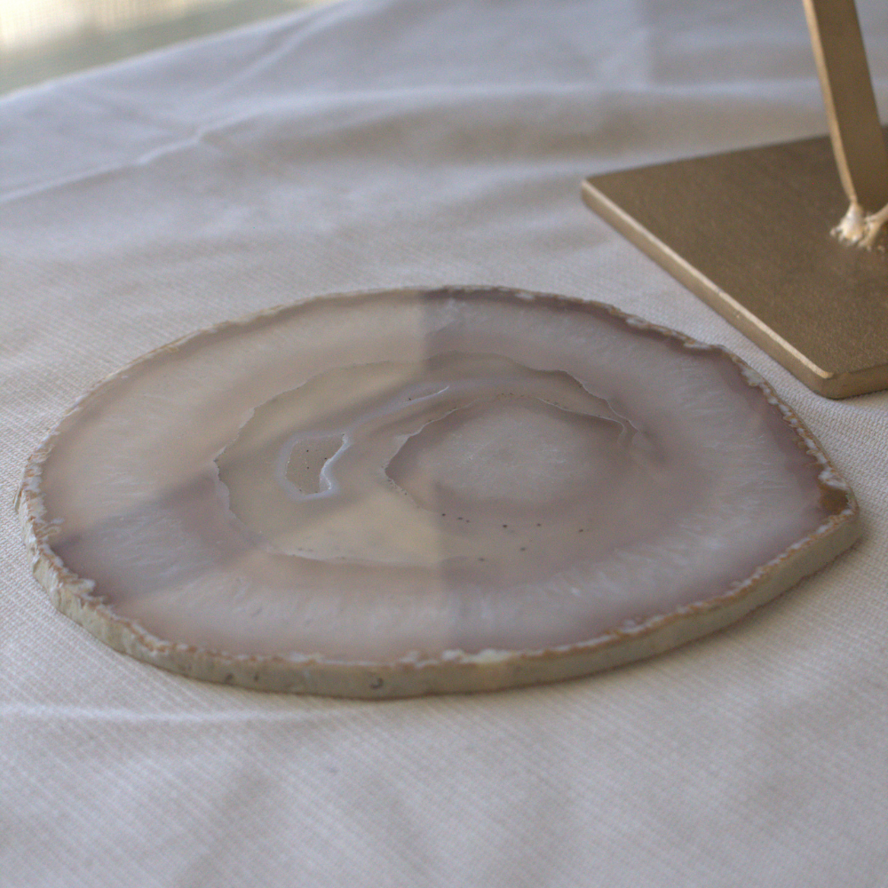 Esse pratinho de ágata com um desenho natural que lembra lua, pode ser usado como porta-joias, apoio para velas ou cristais, suporte para pequenos itens no lavabo ou até mesmo como um detalhe decorativo especial na mesa de trabalho. Cada peça é única em cor, formato e desenho natural, levando equilíbrio e harmonia para o ambiente.