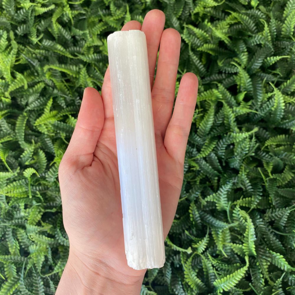 O bastão de selenita pode ser usado durante a meditação para impedir que a mente seja afetada por influências externas. Também pode ser utilizado para a limpeza e energização de outras pedras naturais, basta deixá-las em contato com a selenita.