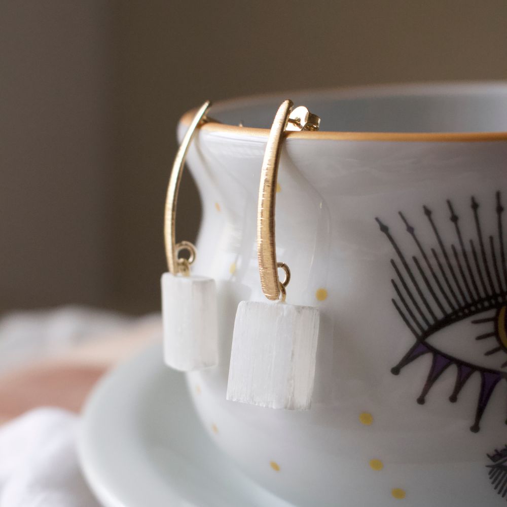 Brinco Clássico com Selenita Banhado à Ouro