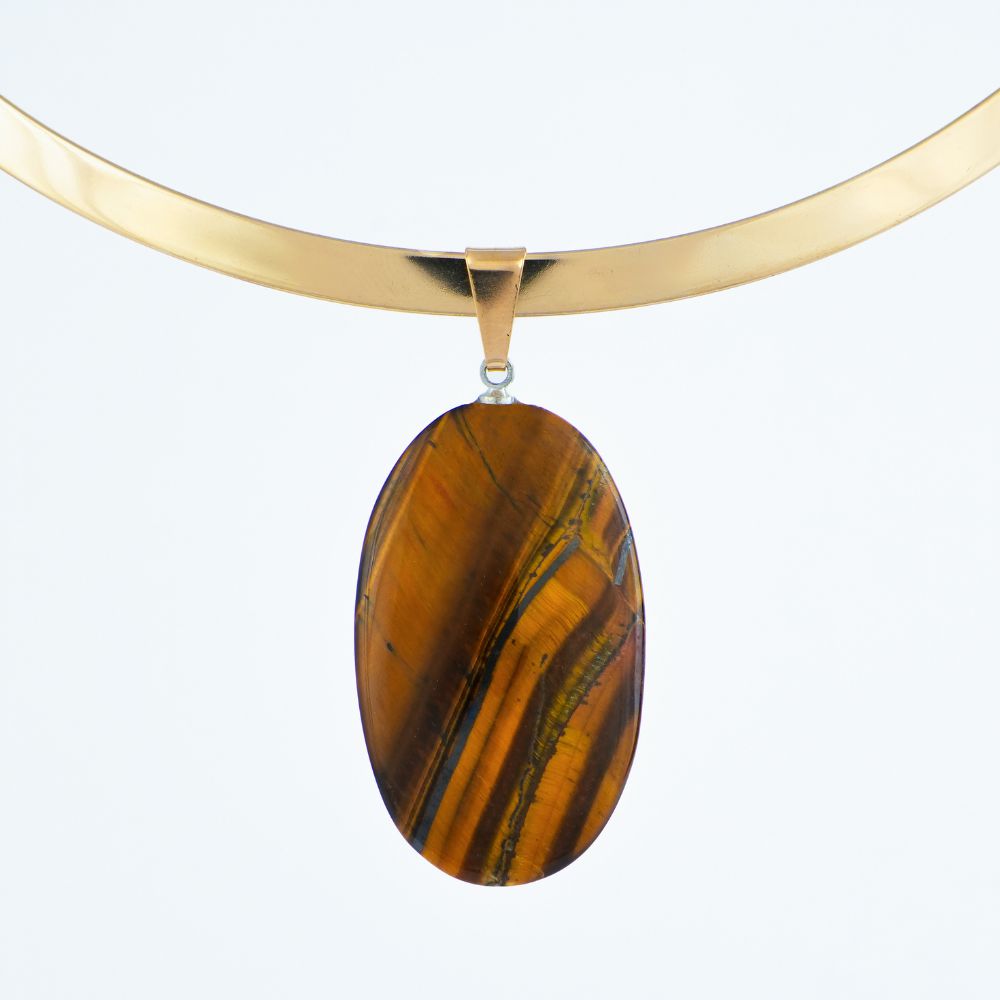 - Conteúdo: 1 gargantilha com aro largo com pingente de pedra natural Olho de Tigre
