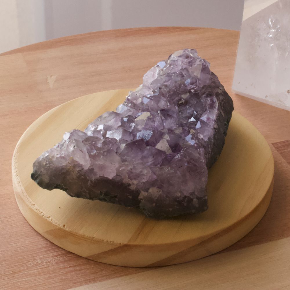 A Drusa de Ametista é um aglomerado de cristais que cresceram na mesma base e não foram separadas. Elas possuem um campo de atuação mais amplo, devido a sua quantidade de pontas. Além de ser um belo objeto de decoração podem ser usadas para limpar e energizar ambientes, objetos e outras pedras. Sua energia facilita o trabalho em grupo, trazendo harmonia e leveza.