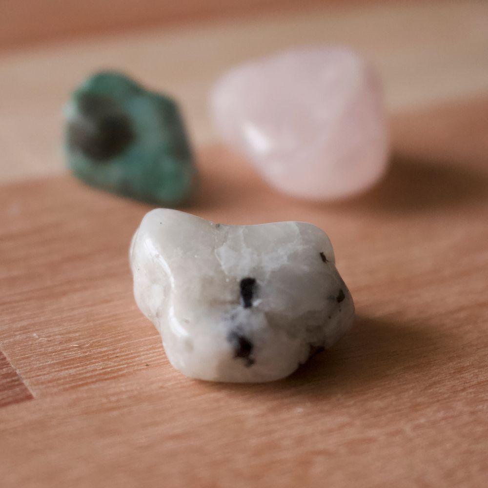 Pedra da Lua: É a pedra da energia feminina, inspira sensualidade e fertilidade e trabalha no ciclo menstrual. Ajuda a acalmar e a equilibrar as emoções.