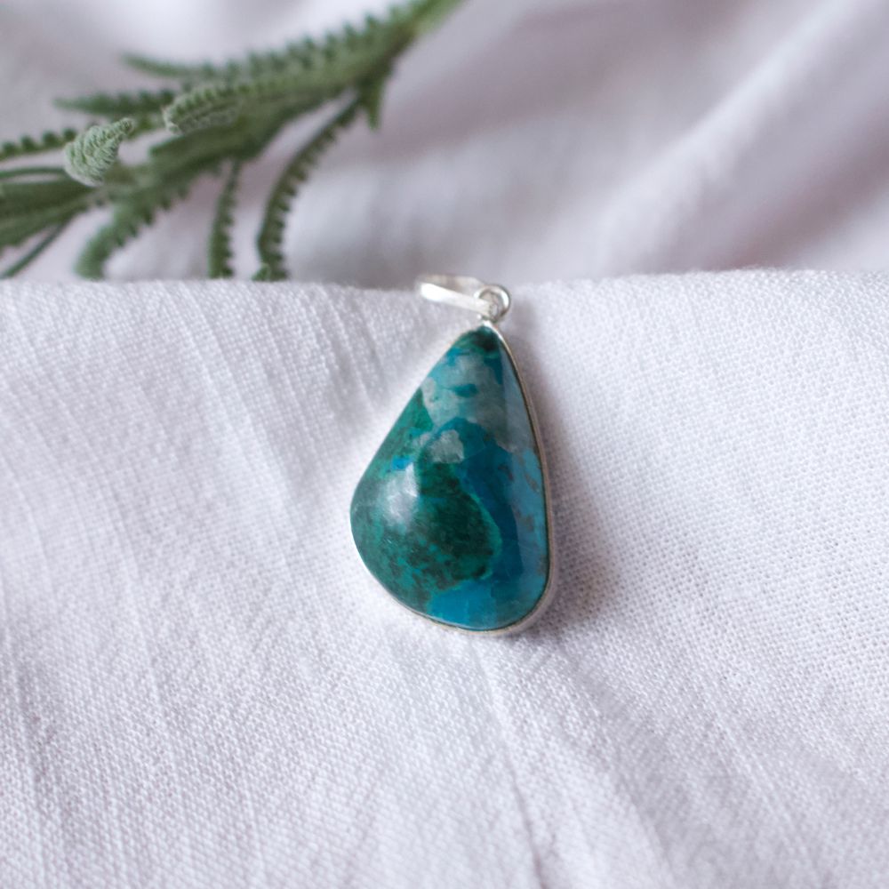 - Conteúdo: 1 pingente de Pedra Natural Crisocola em Prata 925