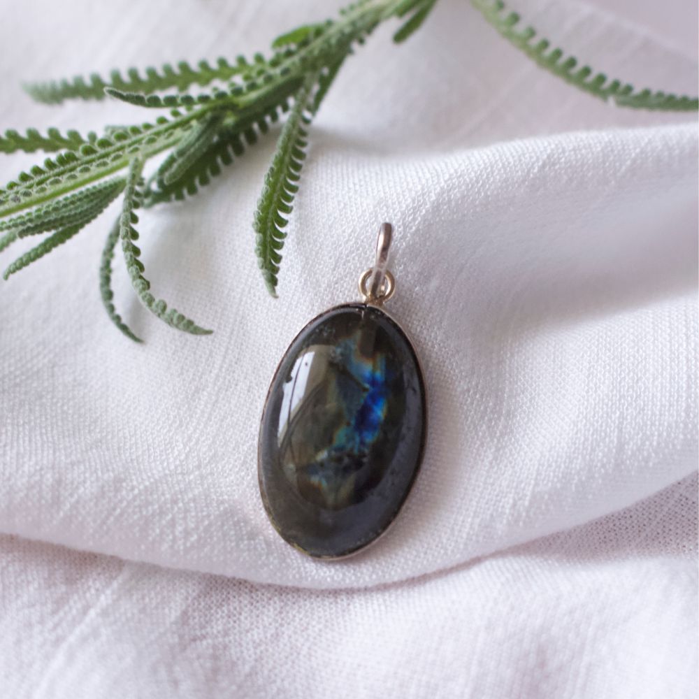 - Conteúdo: 1 pingente de pedra natural Labradorita em formato oval em prata 925