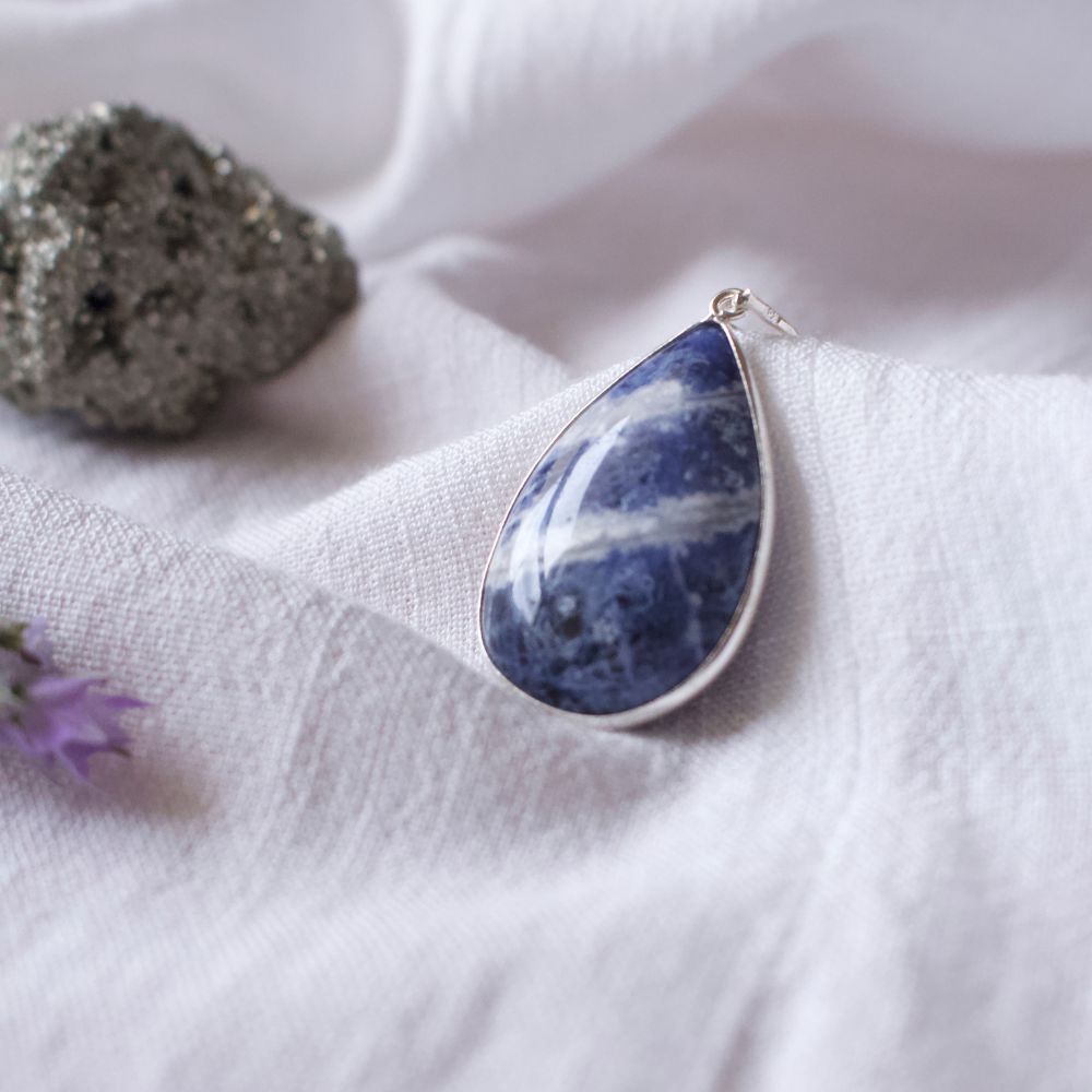 - Conteúdo: 1 pingente de pedra natural Sodalita em formato de gota em prata 925