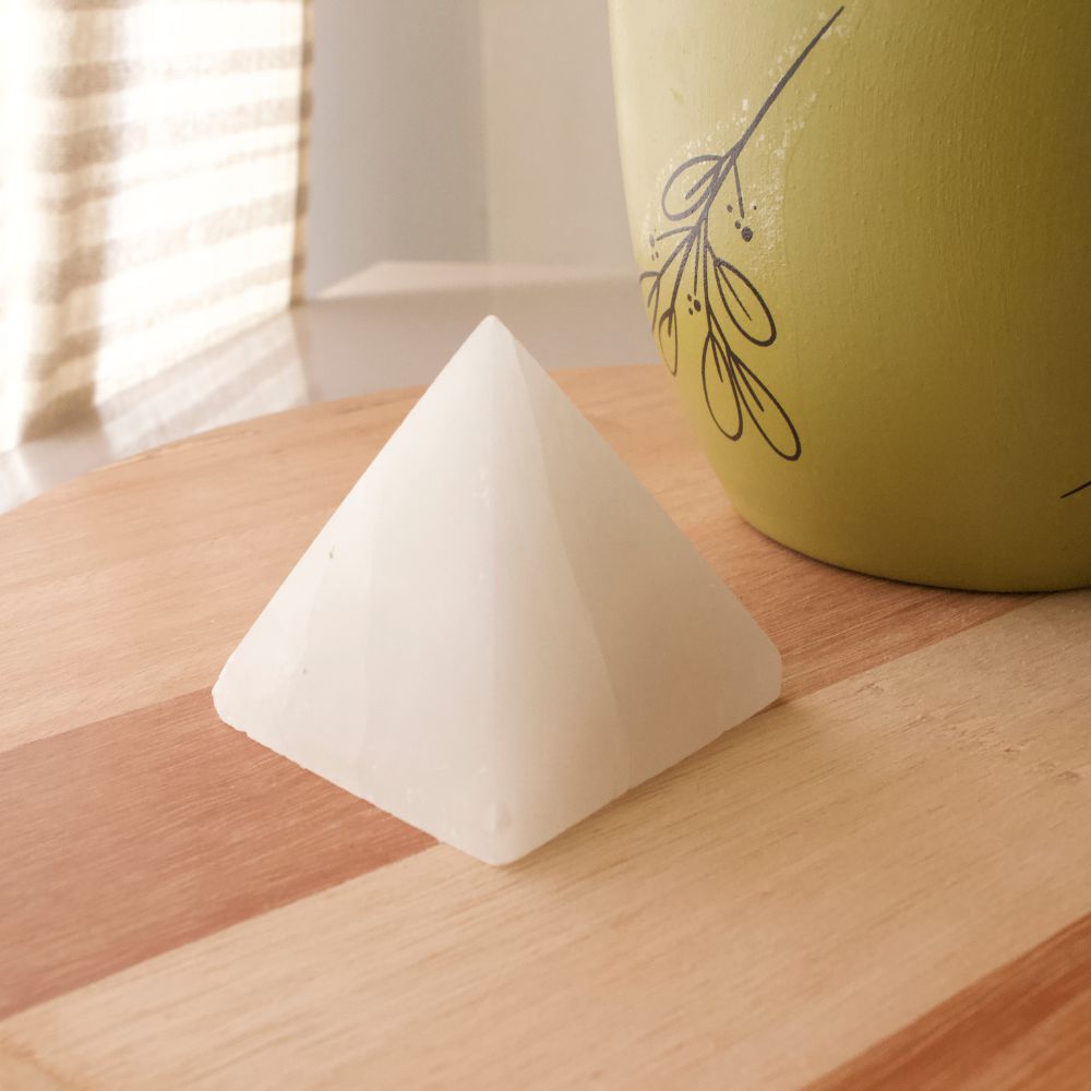- Conteúdo: 1 pirâmide de pedra natural Selenita