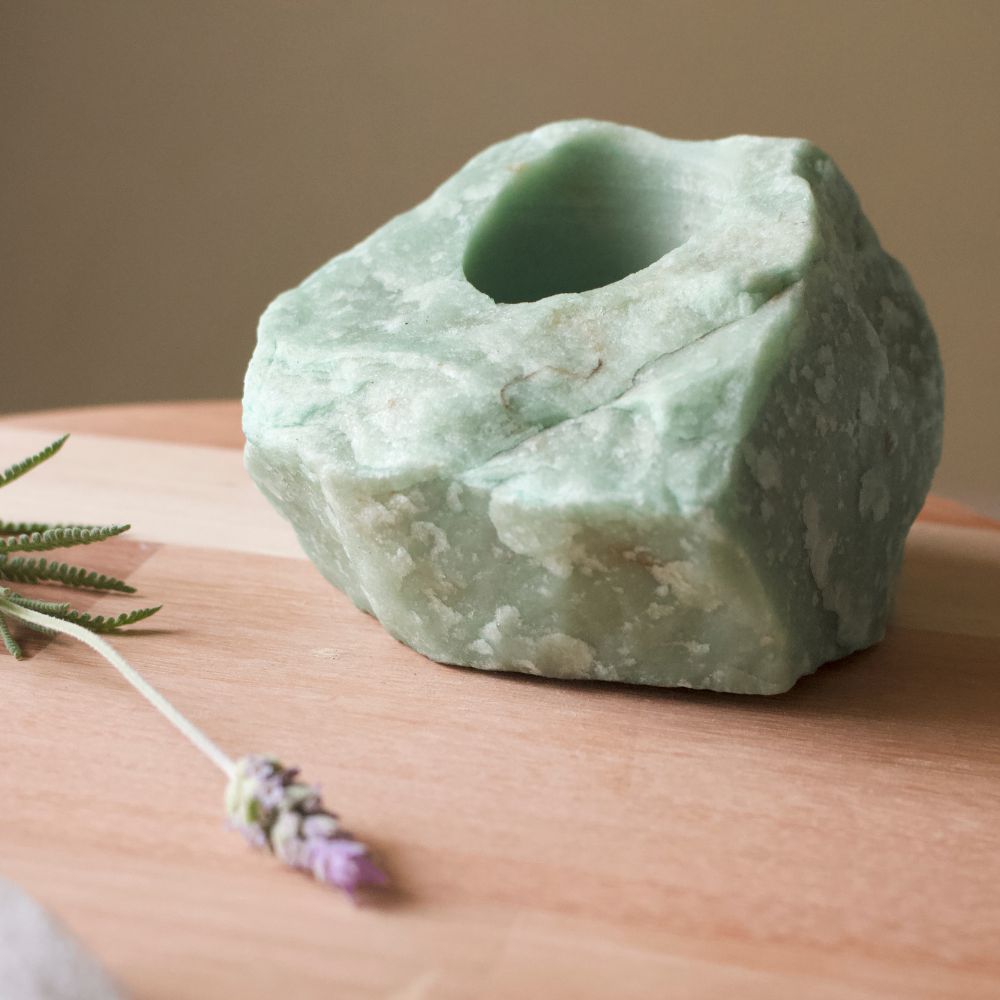 - Conteúdo: 1 porta vela de pedra natural quartzo verde